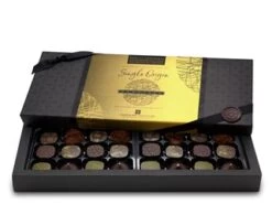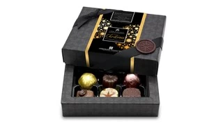 A small sophisticated gift box, complete with festive season wrap, gros grain ribbon and embossed wax seal, containing 6 milk, dark and white assorted chocolates taken from our Superior Selection range, ideal for that token Christmas chocolate gift but without any compromise on quality.
