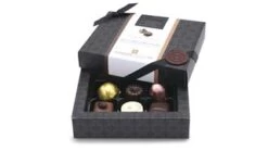 A small sophisticated gift box, complete with gros grain ribbon and embossed wax seal, containing 6 milk, dark and white assorted chocolates taken from our Superior Selection range, ideal for that token chocolate gift but without any compromise on quality.