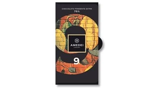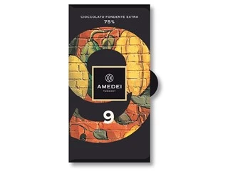 The No.9, dark chocolate bar from Amedei, created from a blend of cocoas from 9 selected plantations. The highest cocoa content chocolate that Amedei has created so far at 75%. This fine chocolate provides notes of currant with a contrasting profile of sweet acidity and bitter, slightly astringent, flavours.