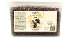 - 1kg of chocolate curls at wholesale cost, packed within a resealable plastic tub.