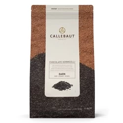 Dark chocolate vermicelli (chocolate strands) with a gloss finish for wide use in cake, dessert and chocolate decoration. Made from high quality Belgian chocolate.