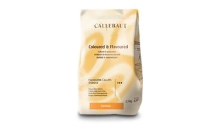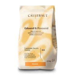 Orange chocolate chips (callets) of white chocolate from Callebaut, naturally flavoured with orange. Created for easy melting and a wide range of use from moulding & enrobing to melting and decoration.