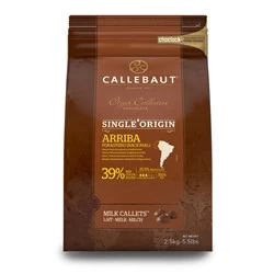 Milk chocolate couverture chips (callets) from Callebaut, created with cocoa exclusively grown in Ecuador from the Nacional cocoa bean (arriba means higher and refers to North West region). This single origin, milk chocolate couverture offers a buttery, creamy, fudge taste with accents of nuts.