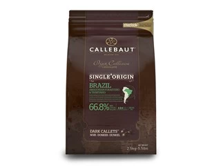 The latest single origin dark chocolate couverture chips (callets) from Callebaut, made with Forastero and Trinitario cocoa from the Amazonian rain forest in Brazil. Notes of tropical fruits within intense cocoa tastes.