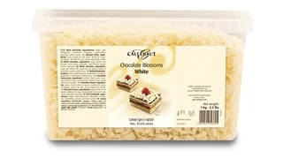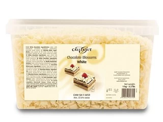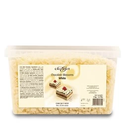 White chocolate blossoms (curls) made of high quality, Belgian chocolate from Callebaut, under their Mona Lisa Brand.