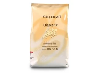 Shiny pearls of white chocolate with a delicious, biscuit, crunchy centre. Created by Callebaut for cake, ice cream and dessert decoration. Made from high quality Belgian chocolate.