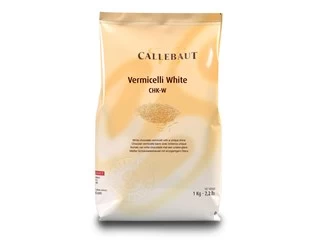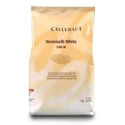 White chocolate vermicelli (chocolate strands) with a gloss finish for wide use in cake, dessert and chocolate decoration . Made from high quality Belgian chocolate. Economically packed for supply at wholesale prices.