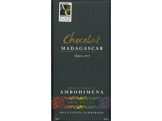 Intensely bitter for the purists that appreciate 100% cocoa content chocolate. Created from fine flavour cocoa grown exclusively on the Ambohimena farm on the Mava estate in the Sambirano valley, on the island of Madagascar. Notes of plum, nuts, caramel.