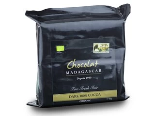 100% cocoa content, single origin, bitter dark chocolate couverture. This organic chocolate couverture contains no added sugar. Created for wide use in the making of chocolate, cakes and desserts.