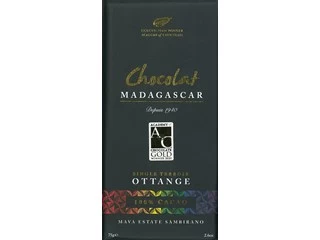 Created from fine flavour cocoa grown exclusively on the Ottange farm on the Mava estate in the Sambirano valley, on the island of Madagascar. Intensely bitter for those that appreciate 100% cocoa content chocolate. Notes of citrus, plum, honey, nuts.