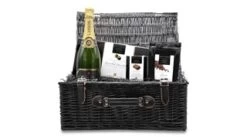 This luxury gift hamper is sure to impress with its stunning wicker basket presentation. Beautifully hand packed and finished, the basket can be used again and again.