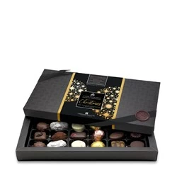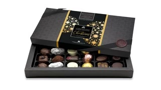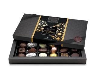 This special, Christmas Limited Edition, chocolate gift box contains an assortment of 18, luxury milk, dark and white chocolates. Each chosen for their outstanding flavour and purity of ingredients.