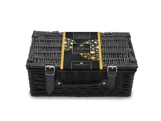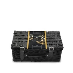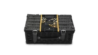 Wicker hamper basket size: Length 36cm x Width 22cm x Height 14cm (approx.). Contents may vary.