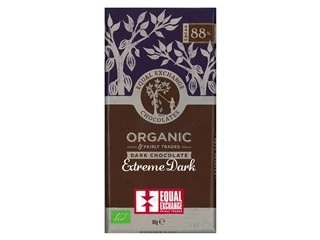 Not as extreme as other high cocoa dark chocolate bars in our collection (up to 100%) but the highest cocoa content from Equal Exchange. Organic and fairly traded and of excellent quality and flavour profile with reduced sugar.