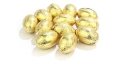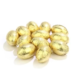 Mini Easter eggs made from solid milk chocolate. Foiled in gold. These mini eggs are the best choice for bulk, cheap mini eggs where the lowest cost is a key requirement.