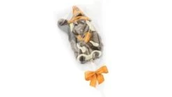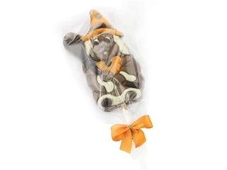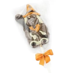 A spooky witch chocolate lolly made from high quality chocolate with naturally coloured decoration. Ideal for Halloween parties and gifts. Gift wrapped in clear acetate with an orange ribbon.