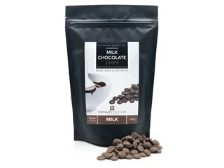 An economical resealable bag of high quality Belgian milk chocolate chips. Created for easy melting and a wide variety of uses. Available in 200g, 500g, 1kg and bulk 2.5kg & 10kg bags.