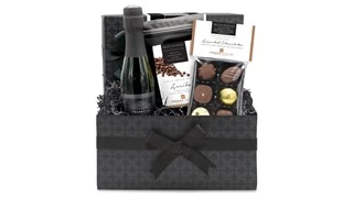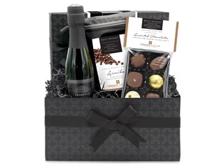 A delicious mini hamper from our Superior Range especially for milk chocolate lovers. Contains 20cl bottle of Il Caggio, extra dry Prosecco, 6 “Superior Selection” assorted milk chocolates from our gourmet chocolate range and a ‘Arriba’ single-origin, milk chocolate drops, nibble pouch.