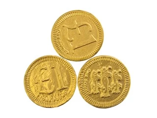 One pound chocolate coins made from high quality milk chocolate.