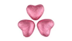 Milk chocolate hearts, individually wrapped in pale pink foil. Made from high quality milk chocolate.