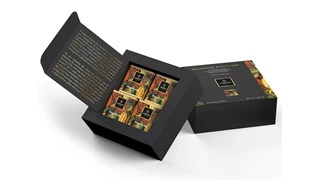 A gift box of 12, very special dark chocolate squares. The prized Porcelana cocoa bean provides a refined, non-acidic and nutty flavour with notes of caramel.