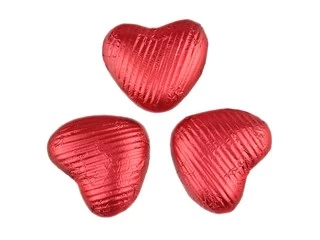 Milk chocolate hearts individually wrapped in red foil. Made from high quality milk chocolate.