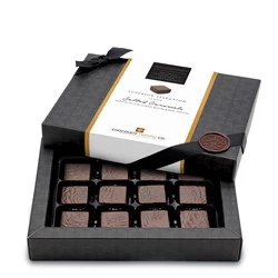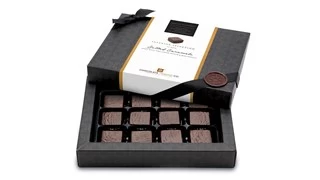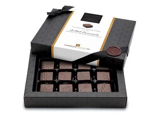 A sophisticated gift box, containing salted caramel chocolates, enrobed in fine milk chocolate, taken from our Superior Selection range, complete with gros grain ribbon and embossed wax seal.