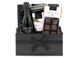 A delicious mini hamper from our Superior Range especially for salted caramel lovers. Contains 20cl bottle of Il Caggio, extra dry Prosecco, 6 “Superior Selection” salted caramel chocolates from our gourmet chocolate range and a salted caramel, white chocolate drops, nibble pouch.