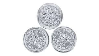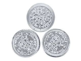 Silver sixpence chocolate coins made from high quality milk chocolate.