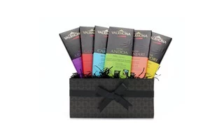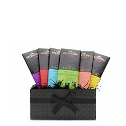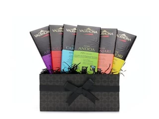 This superb Valrhona chocolate mini hamper, includes 6, hand-picked single origin dark & milk chocolate bars. Valrhona is famous for their extra smooth textured, fruity flavoured, superior quality chocolate. This chocolate hamper makes a great gift for a fine chocolate enthusiast.