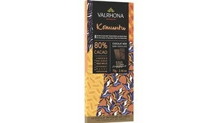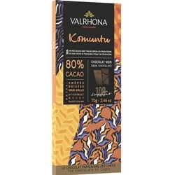 A higher cocoa dark chocolate with a strong, bittersweet and woody aroma with underlying notes of roasted cocoa nibs. Created from a blend of cocoas and described by Valrhona as ‘the ultimate in responsibly made chocolates’.