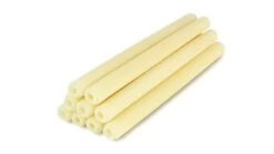 Belgian high quality, white chocolate cigarellos (cigarillos) for the decoration of celebration cakes, desserts and ice cream. White chocolate cigarellos are particularly popular for decorating wedding cakes with their ivory, white finish. Each white chocolate cigarello is approximately 9.5cm length x 0.9cm diameter.