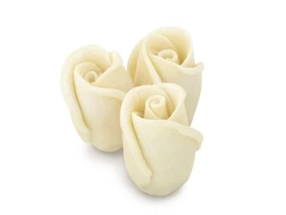 These white chocolate rosebuds are ideally paired with our white chocolate roses and white chocolate cigarellos for decorating cakes. Not suitable for a gift.
