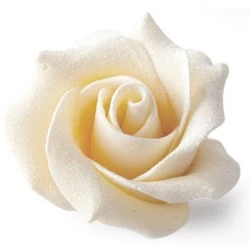 A finely detailed, ivory white chocolate rose of unrivalled quality with a unique, soft shimmer finish. The white rose is from the same manufacturer as the white rosebud and so matches perfectly.