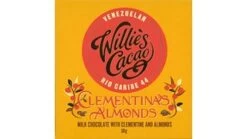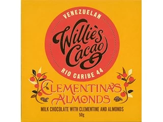 A fine milk chocolate created from fine flavour Trinitario cocoa beans from a single estate in Rio Caribe, Venezuela. Combined with zesty clementine and lightly roasted almonds.