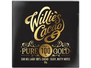 A single origin, 100% cocoa, bitter dark chocolate bar from Willie’s Cacao. Made from bean to bar using fine flavour Trinitario cocoa from Sur Del Lago in Venezuela. This intensely bitter dark chocolate offers nutty notes with an incredibly smooth texture due to extra conching of the cocoa bean at Willie’s.