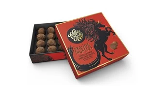 Created from a blend of Sur de Lago single estate dark chocolate, roasted hazelnuts and Cornish sea salt, enrobed in single estate dark chocolate, dusted in cocoa powder. A true, rich, traditional style of chocolate truffle with pure, high quality ingredients.