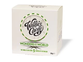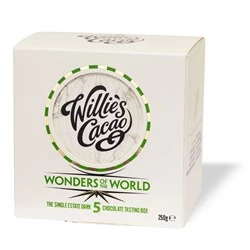 Discover the amazingly individual flavours of the world’s great cacaos. Like fine wines each tastes remarkably different due to its genetics and geography. This box contains 5 bars of single origin dark chocolate from Willie’s Cacao.