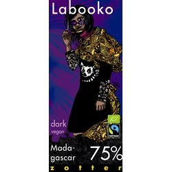 Zotter produces this bar with cocoa beans from the COPROCASA Cooperative, a union of 170 small farms on the Sambirano Valley of Madagascar. The cocoa is grown in volcanic soil, thriving in the island’s tropical and humid climate, and is a mixture of 20% Criollo, the world’s finest cocoa bean, 60% Trinitario and 20% Forastero. An exquisite combination, which Zotter gently roast from bean to bar in Austria, then conche for a relatively short time in order to produce a very distinctive single origin, 75% chocolate.